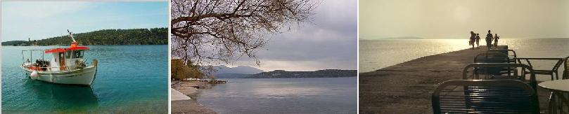 Die reizvolle Landschaft mit ihren vielen Olivenhainen zieht sich entlang des freien Sand-/Kieselstrandes, der parallel zur Uferstrasse verlauft. Im Dorf gibt es Tavernen, Cafes, Einkaufsmoglichkeiten und zwei Bootsanlegeplatze, von wo aus man die Besucher bei Ausflugen zu den Inseln Alatas und Prassouda oder zur etwas weiter entfernt liegenden Insel Trikeri bringt.